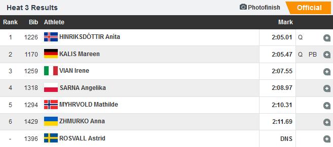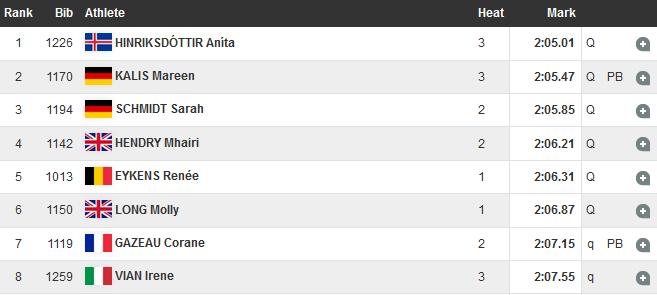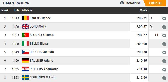Op donderdag 16 juli stonden – in de namiddag – de reeksen van de 800 m op het programma. Renée Eykens startte in de eerste reeks en liep makkelijk naar de overwinning in een tijd van 2’06″31. De top-3 van de Europese ranglijst wonnen elk hun reeks … dat beloofde voor de finale !
