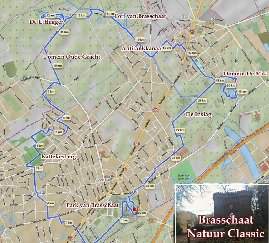 Op zaterdag 7 februari trokken een flink aantal KAPE-joggers – na de goede ervaringen van vorig jaar – opnieuw naar deze natuurloop van 25 km langs 6 parken die Brasschaat (en een beetje Kapellen) rijk is. Deze natuurloop is geen wedstrijd (geen tijdsopname of deelnamekosten), maar de initiatiefnemers willen de deelnemers enkel een mooi parcours met bevoorrading en bewegwijzering aanbieden.