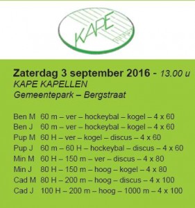 KAPE meetings/organisaties (uitslagen/tijdschema’s)