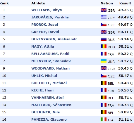 In de volgende reeksen wisten ook de twee andere Belgen – Nils Duerinck en Michaël Bultheel – zich automatisch te plaatsen voor de halve finale. Na de vierde reeks kon het lijstje opgemaakt worden voor deze volgende ronde … en meteen bleek dat Stef in Barcelona voor een gigantische verrassing had gezorgd. Zijn tijd was snel genoeg voor de halve finale ! Nog een wedstrijdje meer op het programma !