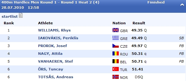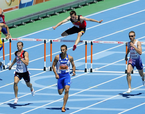 Op een natte baan in het Olympisch Stadion klokte Stef een tijd van 50″86 als 6de in de eerste halve finale van de 400 m horden. Hier eindigde voor Stef – en ook voor ploeggenoten Michaël Bultheel (samen met Stef in dezelfde halve finale met 50″60 als 5de) en Nils Duerinck (sterk in de tweede halve finale als 6de met 50″46) – dit atletieksprookje bij de seniors. Nu nog enkele dagen genieten van Barcelona !