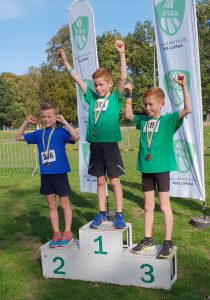 Jobbe (1e) en Tobe (3e) Van De Pas staan broederlijk op het podium (5e leerjaar jongens).